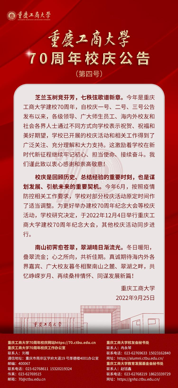 开元电竞(中国)官方网站70周年校庆公告(第四号)