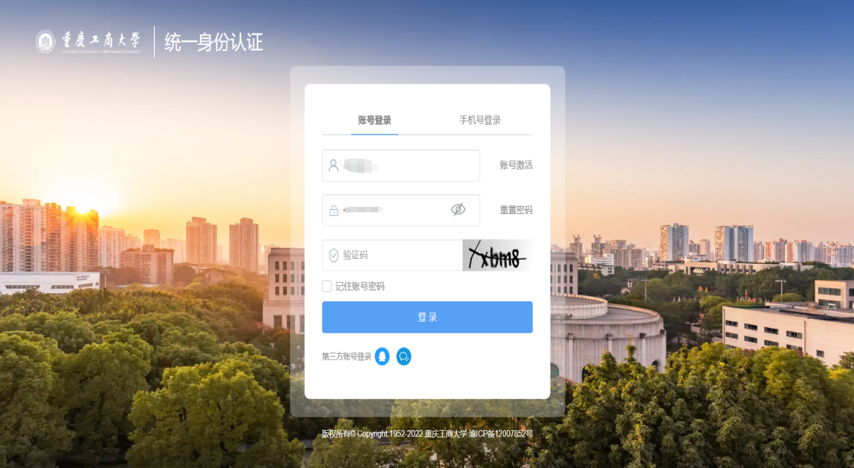 系统用户名、密码为学校统一身份认证账号(学号)及密码。