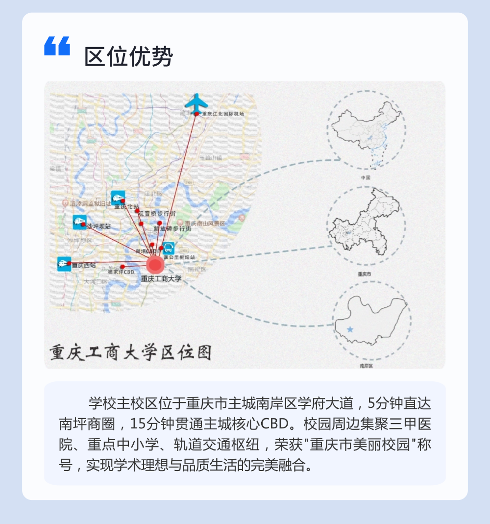 南岸校区:重庆市南岸区学府大道19号/邮政编码:400067