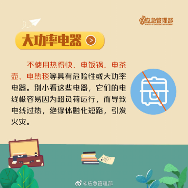 学生公寓人员密集,冬季防火安全显得尤为重要。这些事项要注意:严禁随意改动电源线路或私拉电线;不要在宿舍没人的情况下长时间充电;不要用可燃物直接遮挡白炽灯泡……看图学习。
