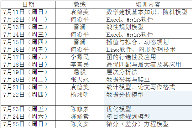 2.7月21日晚和7月22日晚正式组队报名,7月25日下午培训结束前按随机原则分配教练;