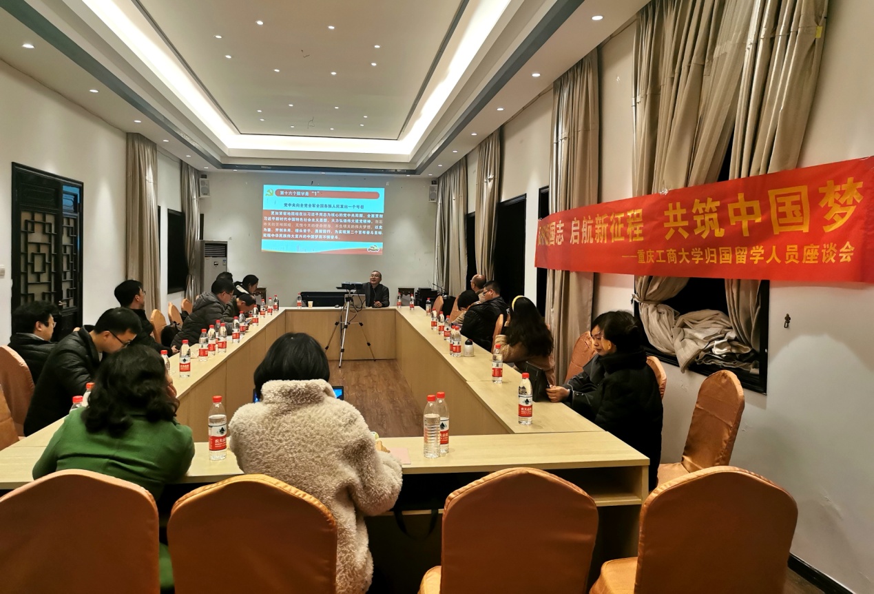 12月10日下午,学校党委统战部和欧美同学会(归国留学人员联谊会)共同举办以“弘扬报国志启航新征程 共筑中国梦”为主题的归国留学人员座谈会暨学习党的十九届六中全会精神专题会。党委统战部常务副部长陈松、综合科科长田静,欧美同学会(归国留学人员联谊会)常务副会长王兰、副会长曾波、副会长李树良、副会长兼秘书长张轶、副秘书长杨晓琼及归国留学人员代表参加了会议。