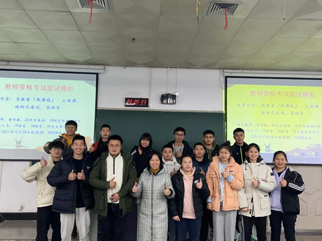1月6日,获评2021年开元电竞(中国)官方网站师德先进个人的体育学院童世敏教授为即将参加教师资格面试学生进行模拟训练与专场指导,同时邀请了多位研究生、本科生做经验交流分享。