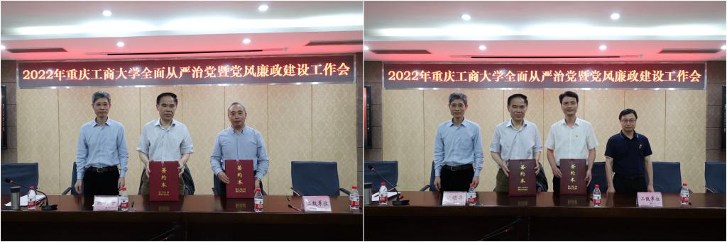 会上,与会人员一同观看了警示教育短片。李志雄和孙芳城与二级单位代表马克思主义学院和教务处分别签订2022年党风廉政建设责任书。