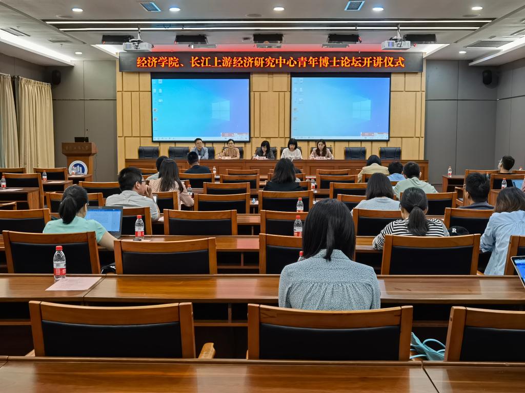 2022年5月27日上午,经济学院、长江上游经济研究中心在图书馆第一会议室联合举办“青年博士论坛”开讲仪式,经济学院党委书记李自维、科研处处长任毅、经济学院副书记副院长宋瑛、经济学院副院长黄潇、长江上游经济研究中心主任助理李颖慧,以及经济学院青年博士教师及长江上游经济研究中心博士生出席了仪式。
