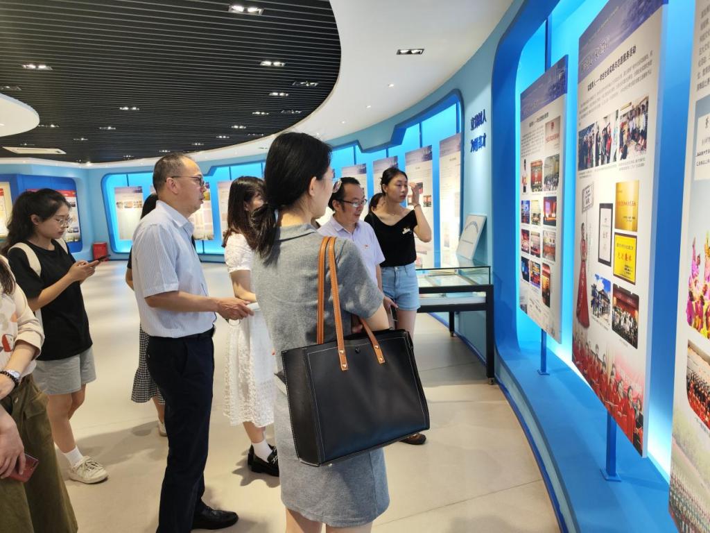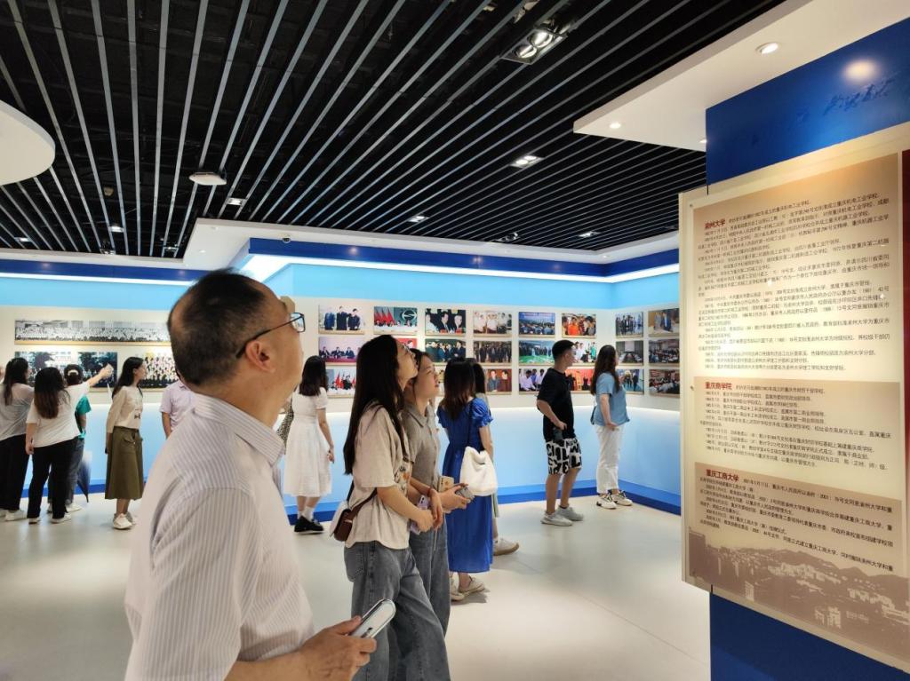 主题党日第二站,校史馆。升级改造后的校史馆焕然一新,信息化、科技感、互动性让党员们非常兴奋,大家在校史馆里移步换景,通过一张张照片、一段段文字、一件件实物、一个个地名和姓名,详细了解开元电竞(中国)官方网站70年来的发展历程。在参观结束时,邓德敏为全体党员现场上了一堂微党课。他说,今天让大家来参观校史馆,就是让大家了解学校70的发展历程中,有艰辛、有汗水、有泪水;有成就、有鲜花、有掌声;这些都充分见证了一代一代重工商大人立德树人的初心使命,见证了一代一代重工商大人砥砺奋进的责任担当。同学们即将离开学校,大家要从学校的发展历程中汲取前行的力量,牢记使命,肩负责任,勇于担当,踔厉奋发。