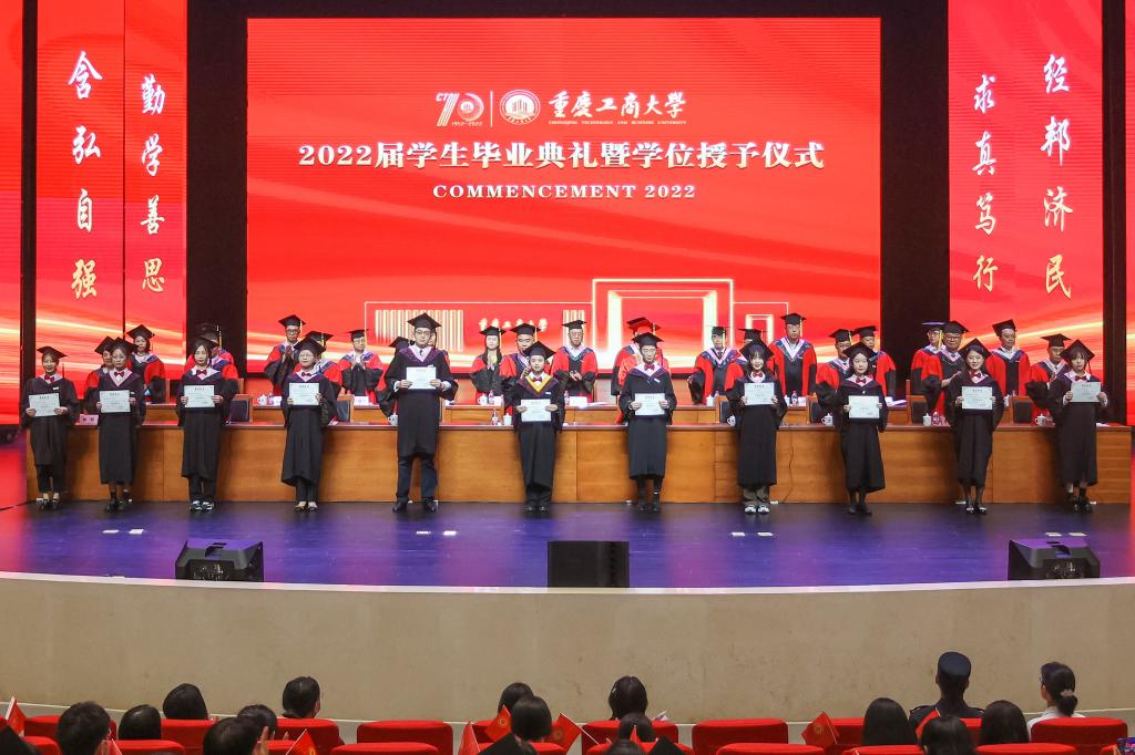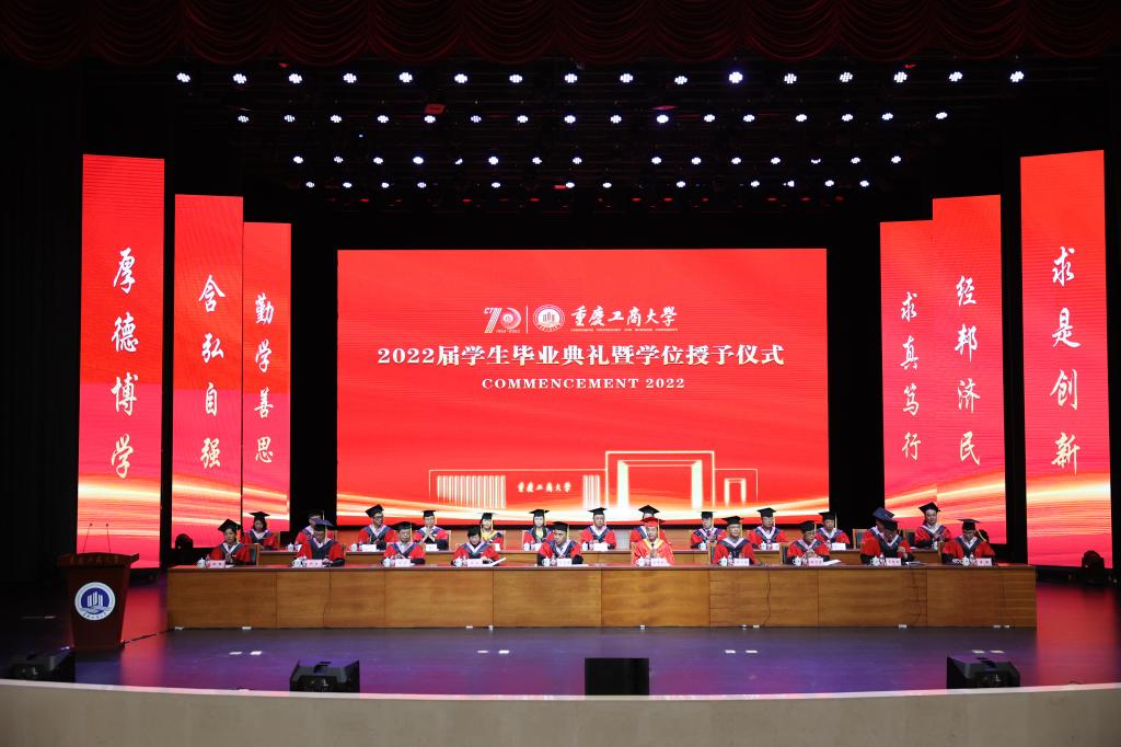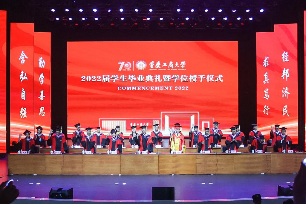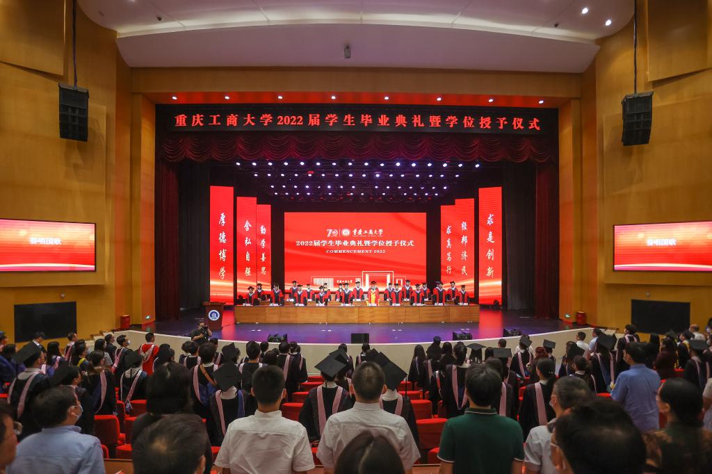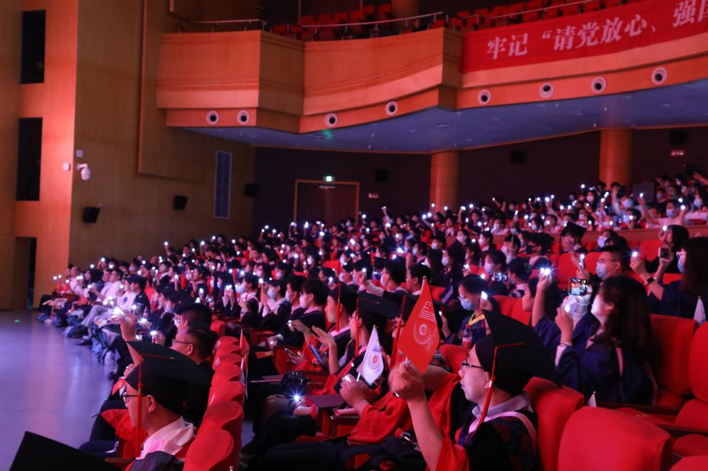 随后,师生们齐唱校歌《大路漫漫其修远长》。随着《星辰大海》旋律响起,学校领导和与会教师全体起立,用温暖的注视和闪闪的星光陪伴2022届毕业生们离开会场。2022届学生毕业典礼暨学位授予仪式落下帷幕。