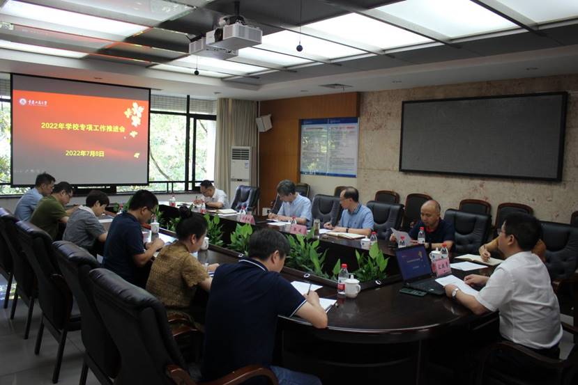 7月8日上午,学校在厚德楼3019会议室召开2022年专项工作推进会,听取相关部门推进学校专项工作情况的汇报。党委副书记、校长孙芳城,党委常委、副校长张波出席会议。党政办公室、人事处、国内合作发展处、教务处、资产管理处等职能部门负责同志参加会议。会议由张波主持。