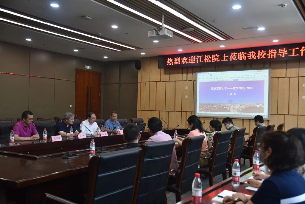 会后,江松院士还与校长孙芳城、副校长张波就学科发展定位、高层次人才引进、校友资源拓展利用、人才培养机制等进行了深入交流。孙芳城对江松院士的悉心指导表示衷心的感谢,希望数学与统计学院认真组织学习研讨,在学校“商工融合”大背景下加快学科专业建设步伐,努力推动学院发展迈上新台阶。