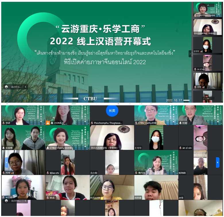 近日,由我校留学生院主办的2022年秋季线上汉语文化交流项目顺利结束。本次项目吸引了来自泰国的圣尼古拉斯学校、班玛堪学校、汕巴东高中、梅林中学的近200名师生共同参与。学员们通过“云端”课堂的方式进行了5天的学习,了解了网络社交、扫码支付、电商购物、交通出行等中国现代的生活方式;重庆景点“线上”打卡环节让海外师生隔着屏幕感受了重庆山水之城的魅力;同时,中国结、汉服礼仪、剪纸课让学员们领略了中国传统文化之美。同学们在了解中国文化的同时轻松快乐学习汉语,全新的课程体验得到师生们的高度评价。