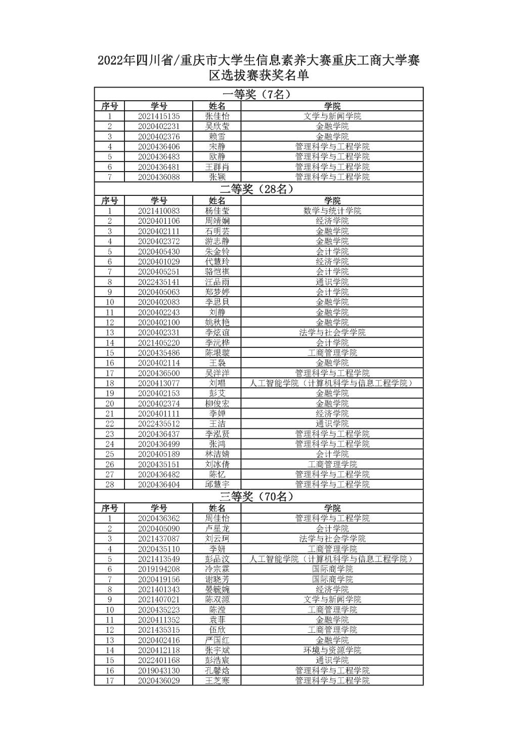 自9月22日发布比赛预通知以来,各学院同学积极踊跃报名参赛。本次比赛我校注册人数1600余人,共有来自19个学院的近700名学生参加了比赛。在平台和指导老师的共同培训指导下,同学们积极自主学习,取得了优异成绩,75名同学在川渝高校28000余名全体参赛同学中排名前1800名以内,位列重庆市高校第二名,仅次于重庆大学。组委会根据比赛成绩排名(分数相同者答题时间短者排名靠前),共评出一等奖7名,二等奖28名,三等奖70名,获奖名单请见附件。