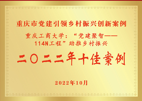 近日,重庆市党建引领乡村振兴创新案例“二〇二二年十佳案例”评选结果在中共重庆市委党建门户七一网公布,我校工作案例《“党建聚智——114N工程”助推乡村振兴》成功入选。