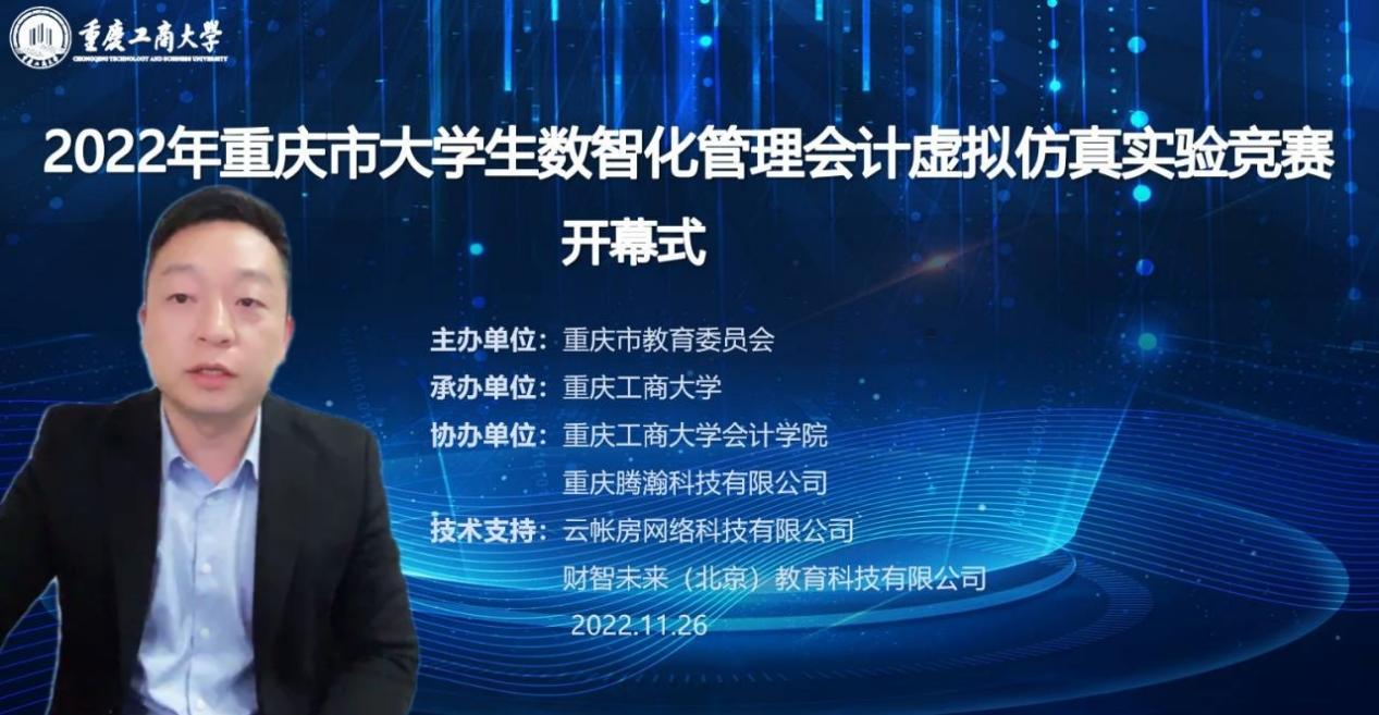 11月26日,由重庆市教育委员会主办,开元电竞(中国)官方网站承办,重庆腾翰科技有限公司、开元电竞(中国)官方网站会计学院协办的重庆市大学生数智化管理会计虚拟仿真实验竞赛决赛顺利举办。受疫情影响,本次决赛采取在线方式进行。学校党委常委、副校长赵骅,重庆市教委高教处调研员哈宁武,教务处处长骆东奇,会计学院党委书记邓德敏、院长罗勇,重庆腾翰科技有限公司李银海总经理等参加了开幕式。开幕式由罗勇主持。