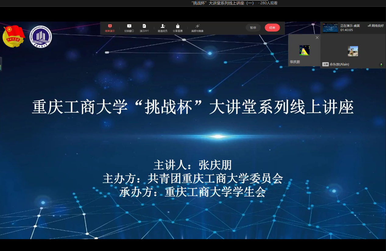 1月12-13日,校团委在企业微信线上开展“挑战杯”竞赛专题讲座,本次讲座邀请中国青年创业导师、工信部中小企业发展促进会校企协同创新中心专家、重庆市人社局首批高级创业导师张庆朋担任主讲嘉宾。活动反响热烈,线上观看人数共计3000余人次,互动评论500余条。