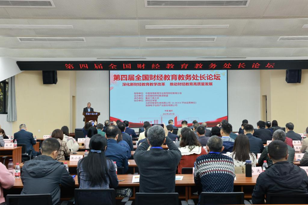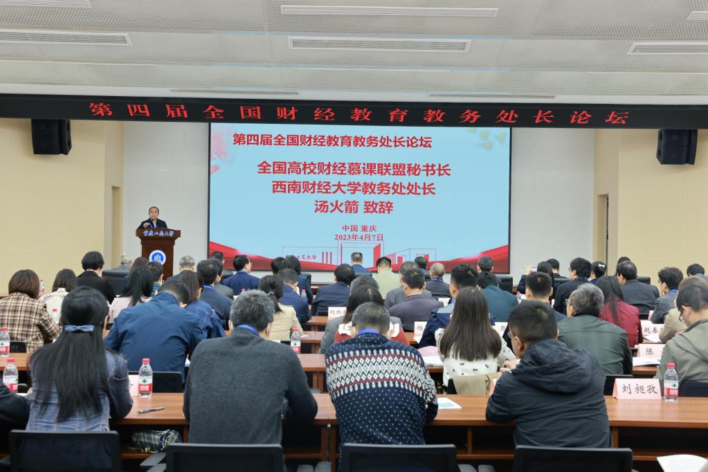 4月7日,由中国高等教育学会高等财经教育分会指导、全国高校财经慕课联盟主办、我校承办的第四届全国财经教育教务处长论坛在我校顺利举行。来自全国46所财经类高校的校领导、教务处长共计100余人参加论坛,共商新文科建设。论坛的主题为“深化新财经教育教学改革,推动财经教育高质量发展”。