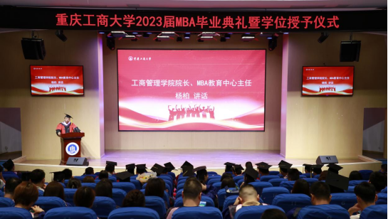 最后杨柏讲话,他向2023届MBA毕业生们送上了美好祝福,相信毕业生们一定能把“含弘自强、经邦济民”的精神永远传承下去。