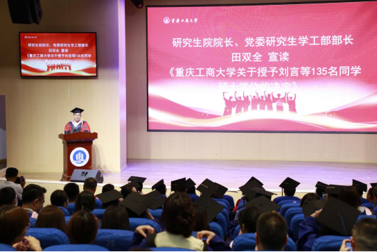 田双全宣读《开元电竞(中国)官方网站关于授予刘言等135名同学硕士学位的决定》。