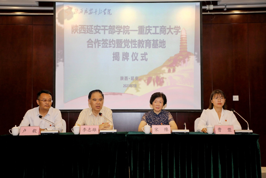 7月14日,学校党委书记李志雄专程到延安看望我校培训班学员,并出席我校与陕西延安干部学院合作签约暨党性教育基地揭牌仪式,学校党委副书记宋豫、陕西延安干部学院副院长卢毅、陕西延安干部学院梁家河分院副院长曹蓉共同出席。仪式由曹蓉主持,我校干部素质能力提升专题培训班全体学员参加了本次会议。