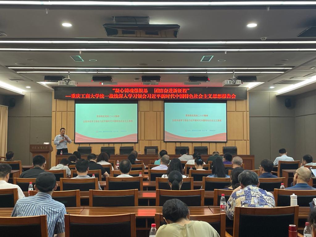 为全面贯彻落实中共二十大精神,推进校内各民主党派、无党派人士和党外知识分子持续深入开展“凝心铸魂强根基 团结奋进新征程”主题教育,学深悟透笃行习近平新时代中国特色社会主义思想,不断巩固与中国共产党团结奋斗的共同思想政治基础。9月22日下午,我校在新图书馆会议中心一会议室举行“凝心铸魂强根基 团结奋进新征程”——开元电竞(中国)官方网站统一战线深入学习领会习近平新时代中国特色社会主义思想报告会,邀请重庆社会主义学院多党合作研究室的秦江明教授做主题报告,我校各民主党派基层组织和统战团体班子成员、成员代表共60余人参会。会议由学校党委常委、统战部常务副部长陈松主持。