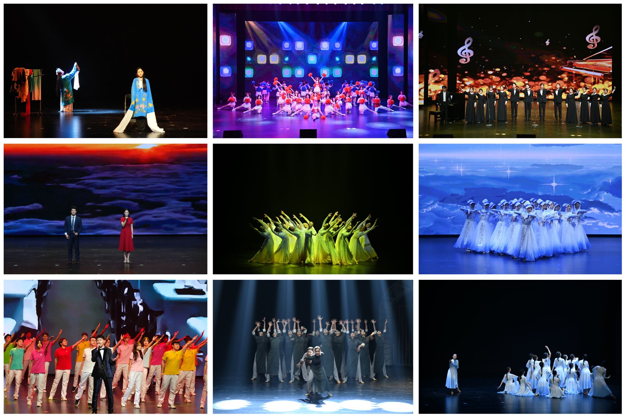 乐起舞动,青春洋溢的啦啦操表演拉开晚会的序幕,欢快的舞蹈尽显重工商大学子青春之姿。活力四射的开场歌舞之后,各个精彩节目纷纷亮相。重庆市第七届大学生艺术展演活动舞蹈专项一等奖节目《漫漫长河》用舞步演绎在自我追寻求索的路程中,青年学子始终葆有面对困惑拼搏的勇气、昂扬阔步的身体力行,有如漫漫长河般的人生姿态,带领青年走向如诗的远方。朗诵《青春的彼岸》用铿锵语言展现青年追求理想的坚定信念,彰显青年一代积极向上的精神追求,让现场师生深切感受到青年学子对美好未来的憧憬。舞蹈《流光叙》《云上》和戏剧《青衣》用曼妙身姿描述青年学子现极向上的精神面貌,描绘出了重工商大青年乐观勇敢、自强不息的青春风采。合唱《视唱奏鸣曲》和舞蹈串烧洋溢着青年独有的青春气息,彰显着青年力量与青年风采。舞蹈《烽火摇篮》用艺术方式弘扬主旋律、传播正能量,用舞蹈语言讲红色故事,激发师生爱党爱国之情。在歌曲《为你荣耀》奋发前进的昂扬旋律中,我校2024年新年晚会圆满落下帷幕。