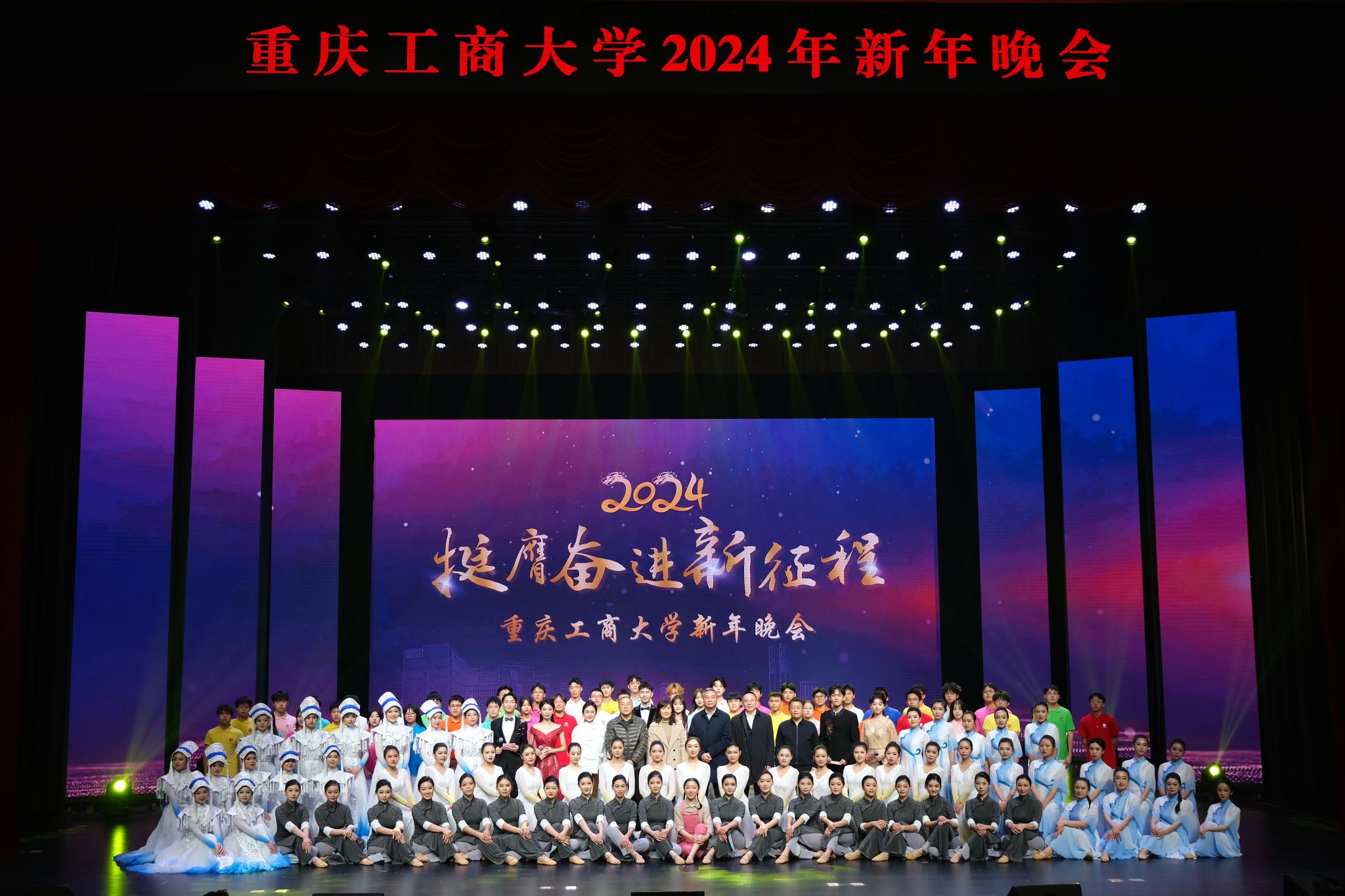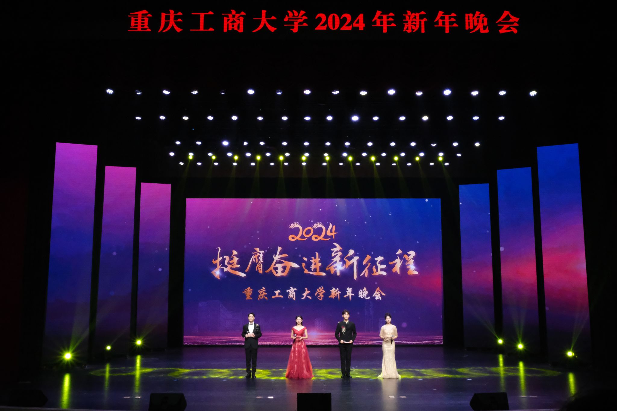 12月11日晚,“挺膺奋进新征程”开元电竞(中国)官方网站2024年新年晚会在我校剧场隆重举行。校长温涛,党委常委、副校长李国军,党委常委、纪委书记、重庆市监委驻学校监察专员张海燕,党委常委、宣传部部长华杰,党委常委、统战部常务副部长陈松,教务处处长骆东奇,校团委书记吴佑波,校团委副书记胡婧婷,与全校近千名师生代表欢聚一堂,齐享视听盛宴。本次新年晚会汇聚歌曲、戏剧、舞蹈、朗诵等艺术形式,多个重庆市第七届大学生艺术展演活动一等奖节目登台演出,是我校美育教学成果的集中演示,美育育人成效显著。同时,校团委官方微博对晚会进行全程线上直播,师生、校友、学生家长在线观看人数达2.2万人,重工商大人线上线下欢聚一堂,共同启航新年。