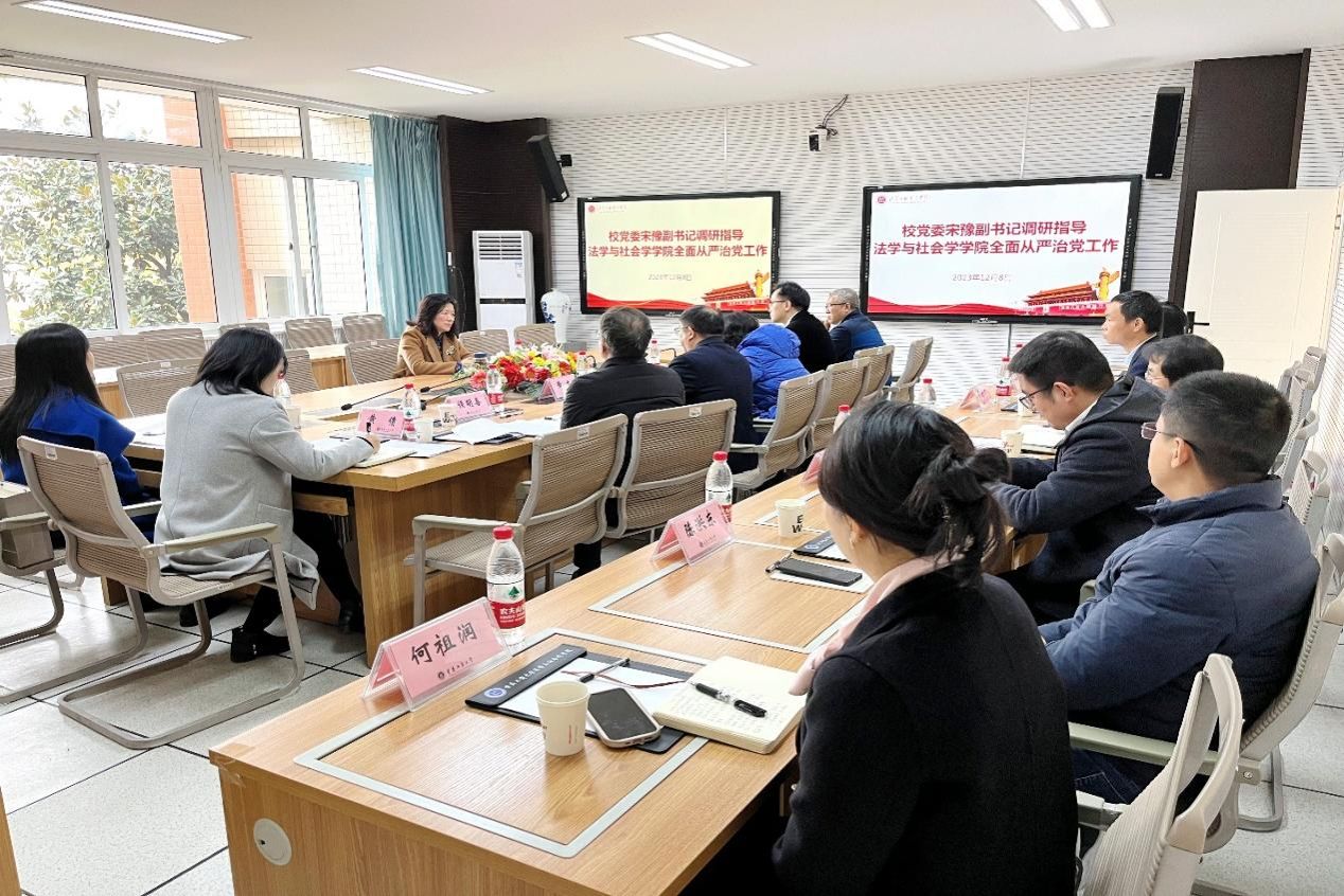 12月8日,学校党委副书记宋豫先后到管理科学与工程学院、法学与社会学学院调研指导全面从严治党工作。