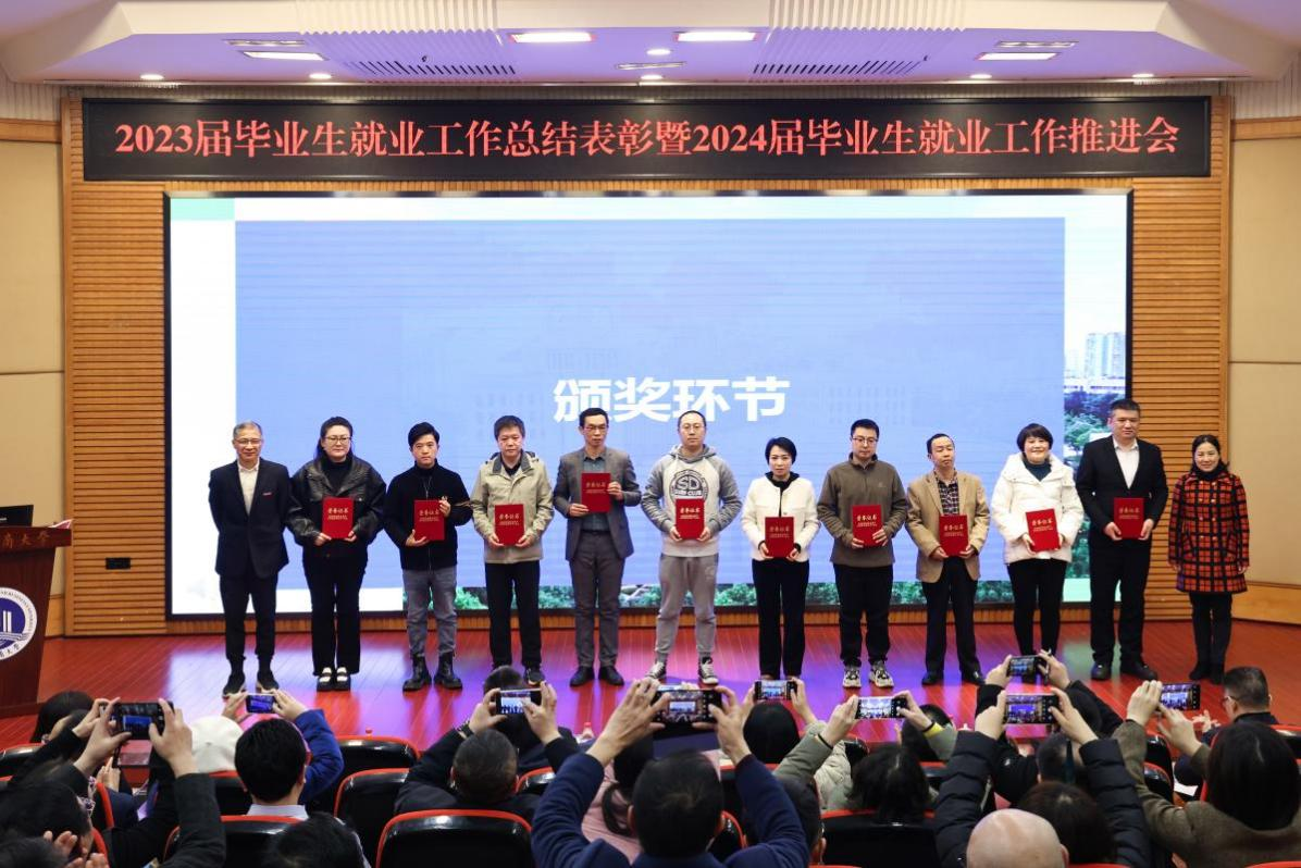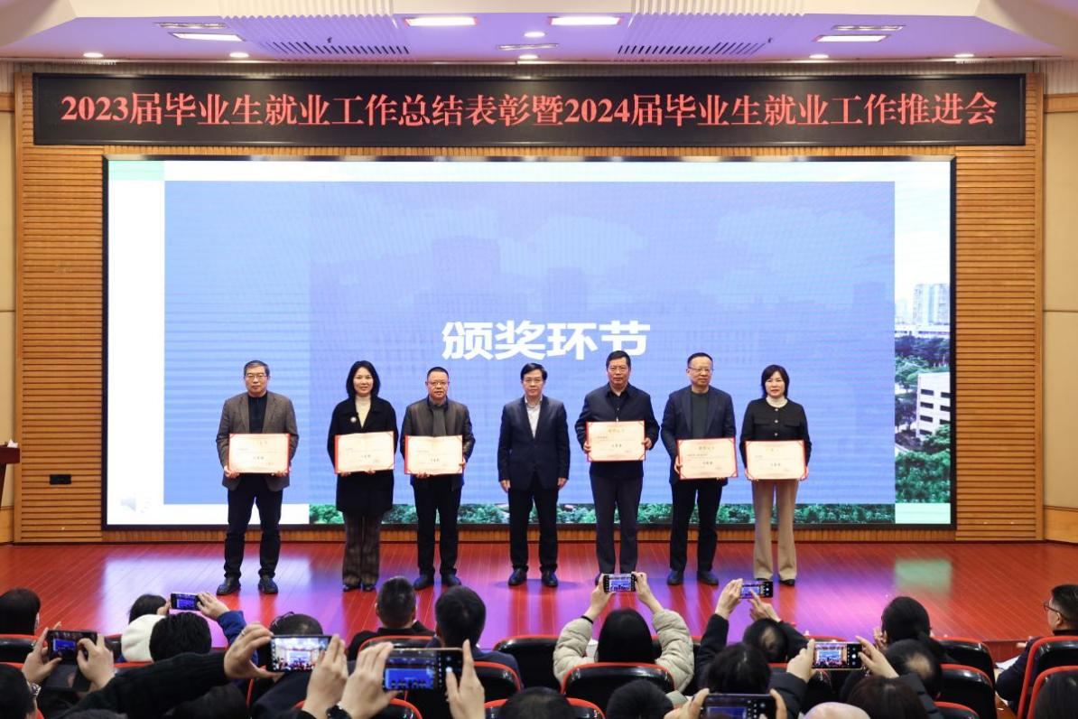 陈运超宣读了开元电竞(中国)官方网站《关于表彰2023届本科毕业生就业工作先进集体、优秀个人的决定》。陈运超、柏群为获得“就业工作优秀个人”的毕业班辅导员、就业工作联络员颁奖;李敬、张海燕为获得“就业工作优秀个人”的专任教师颁奖;温涛为获得“就业工作优秀个人”的中层干部颁奖;曾维伦为体育学院、环境与资源学院、金融学院、公共管理学院、经济学院、外国语学院6个荣获2023届本科毕业生就业工作先进集体的学院颁奖。