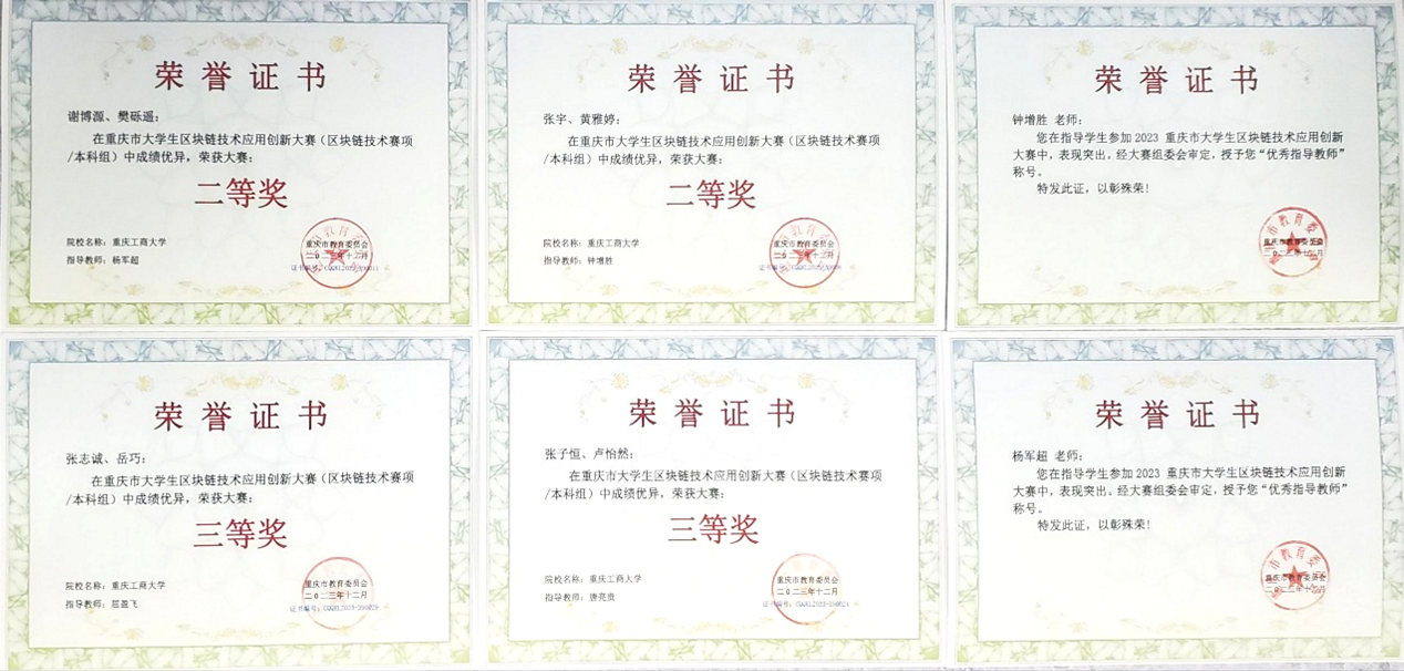 近日,由重庆市教育委员会主办、重庆城市科技学院承办的2023年重庆市大学生区块链技术应用创新大赛圆满落幕。在智能感知与区块链技术重庆市重点实验室的支持下,我校人工智能学院组织了4支队伍参加重庆市区块链大赛的技术组比拼并获佳绩。