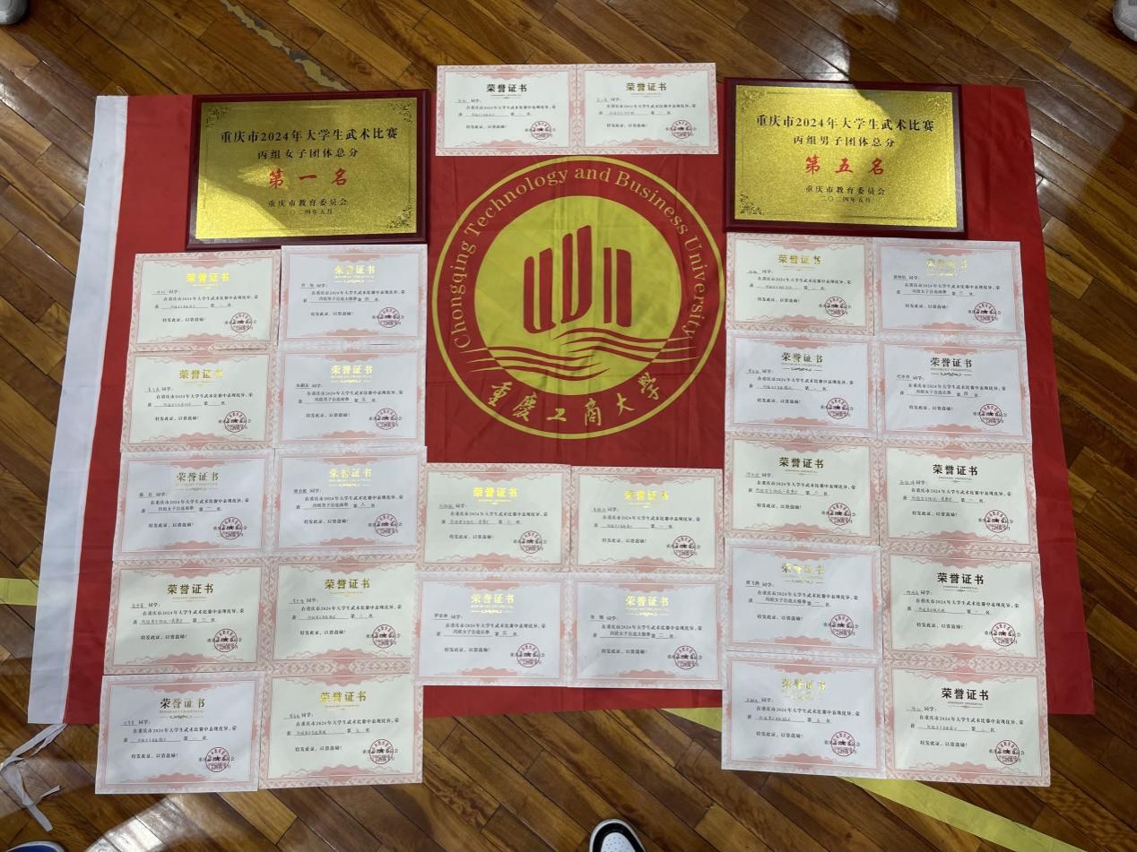 5月9日—12日,由重庆市教委主办、重庆师范大学承办的2024年重庆市大学生武术比赛在重庆师范大学体育馆举行。体育学院黄龙老师带领我校武术专业代表队参赛。经过四天的激烈角逐,校武术专业代表队揽获单项金牌13枚、银牌6枚、铜牌4枚,累获奖牌总数34枚(包含其他奖牌),再次斩获女子丙组团体总分第一名,并获得男子丙组团体总分第五名的优异成绩。