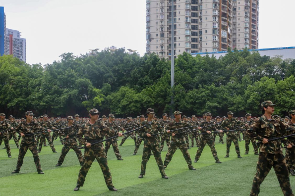 精彩的汇报展示紧随其后。格斗术方阵,动作迅猛如虎,每一次出击都展示出军训学子蓬勃朝气;捕俘刀方阵,“匕首出鞘” 崭露锋芒,刀起是飒爽,刀落是坚定,运动场上的他们意气风发、虎虎生威;队列操方阵,队形变换自如,整齐划一,个个精神饱满、昂首挺胸、气宇轩昂;应急棍术方阵,棍影翻飞、动作连贯,彰显我校学子的蓬勃朝气和昂扬锐气;军体拳方阵,每一次出拳,都力道带风;每一次回旋,都铿锵有力;战术表演方阵,钢枪在手,威风赫赫,动作干脆利落,每一步的踏出都赢得了现场欢呼掌声一片;刺杀操方阵,呐喊声中透露出坚定,每一次挥刀都精准有力,动静之间,尽显军人敢打敢拼的战斗作风。