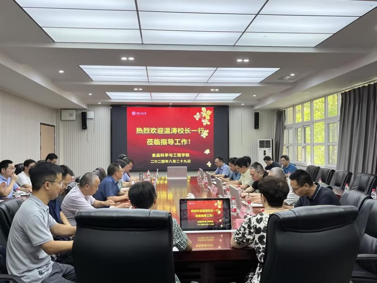 8月29日,温涛校长带领学校各职能部门负责人,到食品科学与工程学院全面检查指导工作,深入了解新学院的设施条件、文化环境、人员安排、学生返校等工作推进及落实情况,并召开了专题建设工作会。会议由食品科学与工程学院党委书记(兼)陈龙国主持。