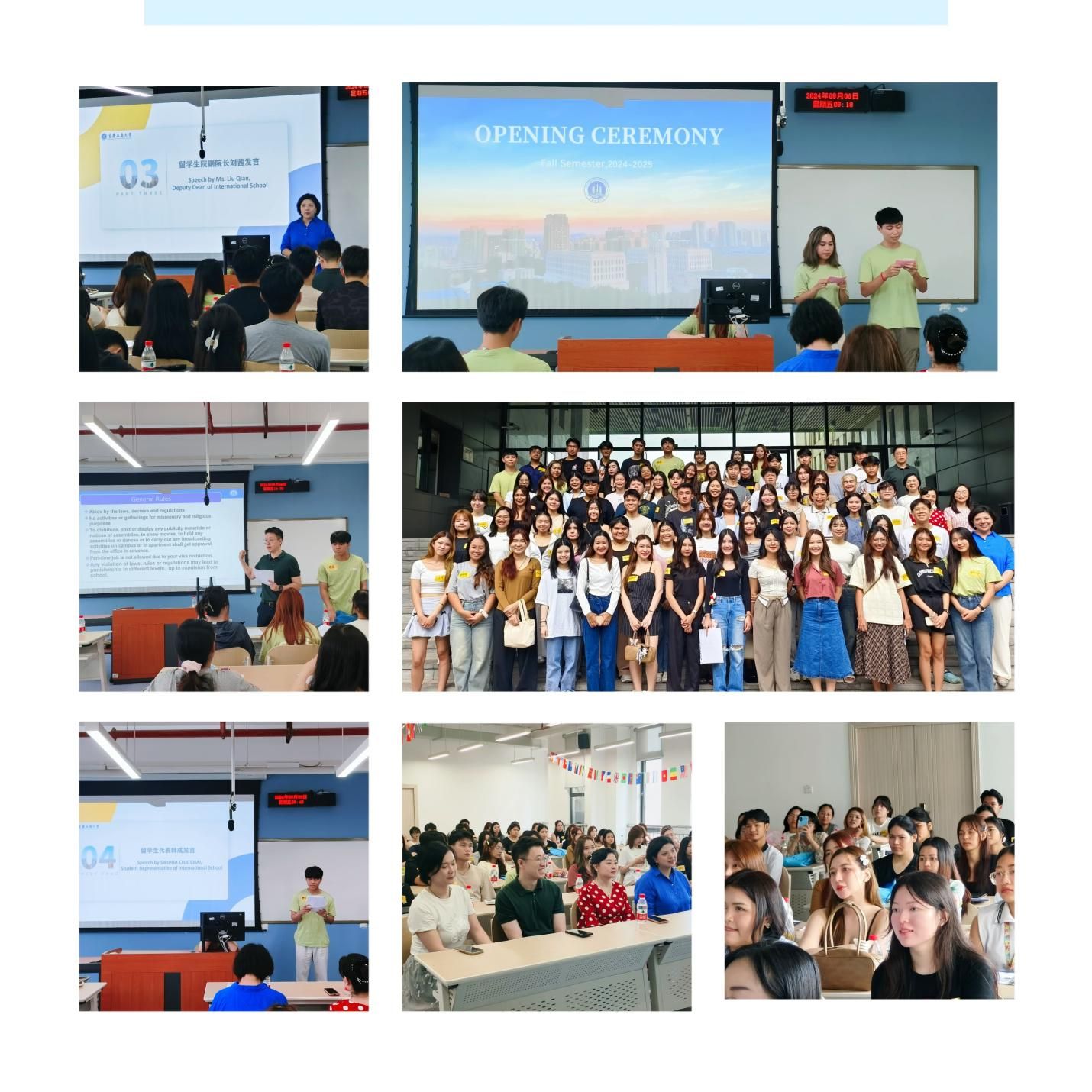 在灿烂而炽热的阳光下,九月的重庆以其独有的热情迎接2024级国际学生的到来。9月6日上午,留学生院2024年秋季学期开学典礼在涵智楼710教室举行。来自泰国、老挝、印度尼西亚、越南等国的近八十名国际学生,跨越重重山水,相聚于开元电竞(中国)官方网站留学生院。他们的到来,如同九月的热浪一般,为校园注入了新的活力与热情。