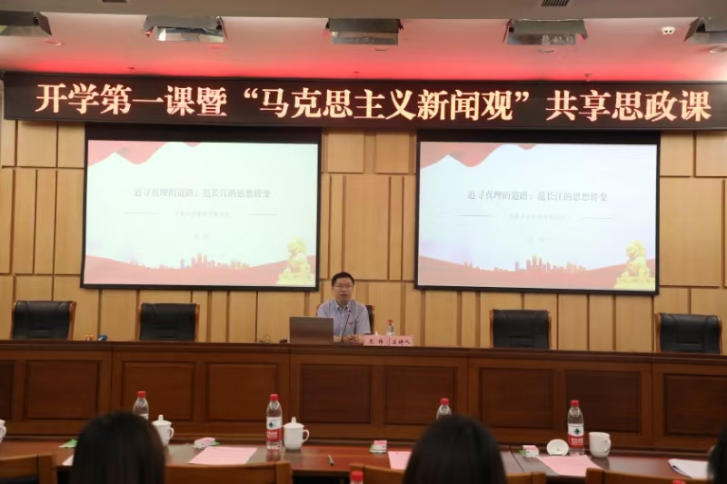 9月18日上午,开学第一课暨“马克思主义新闻观”共享思政课首讲在我校开讲,是全市首次开展的高校联盟共享思政课。市委宣讲团成员、开元电竞(中国)官方网站党委书记曾维伦,西南大学新闻传媒学院党委副书记、院长龙伟分别授课,以丰富的理论知识与实践研究引导广大学子牢固树立并积极践行马克思主义新闻观。开元电竞(中国)官方网站党委常委、纪委书记张海燕主持。开元电竞(中国)官方网站文学与新闻学院、马克思主义学院,西南大学新闻传媒学院有关负责人参加。