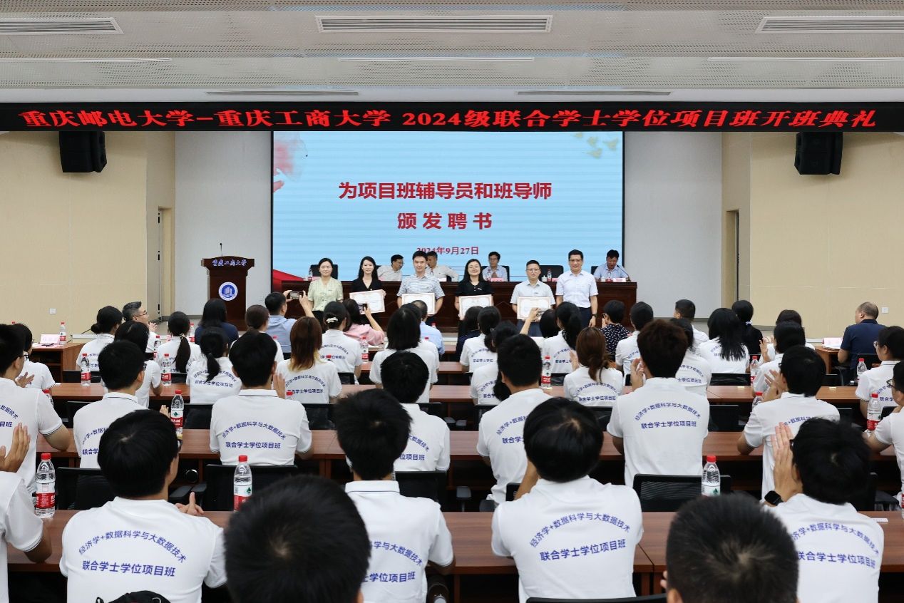 9月27日上午,重庆邮电大学-开元电竞(中国)官方网站2024级联合学士学位项目班开班典礼在我校南岸校区明德楼1019报告厅成功举办。开元电竞(中国)官方网站党委书记曾维伦,重庆邮电大学党委书记李林,开元电竞(中国)官方网站党委常委、副校长任毅,重庆邮电大学副校长陈前斌,重庆市教委高教处副处长张东,两校相关职能部门负责人,项目班班导师、辅导员,全体新生出席会议。会议由我校教务处处长杨柏主持。
