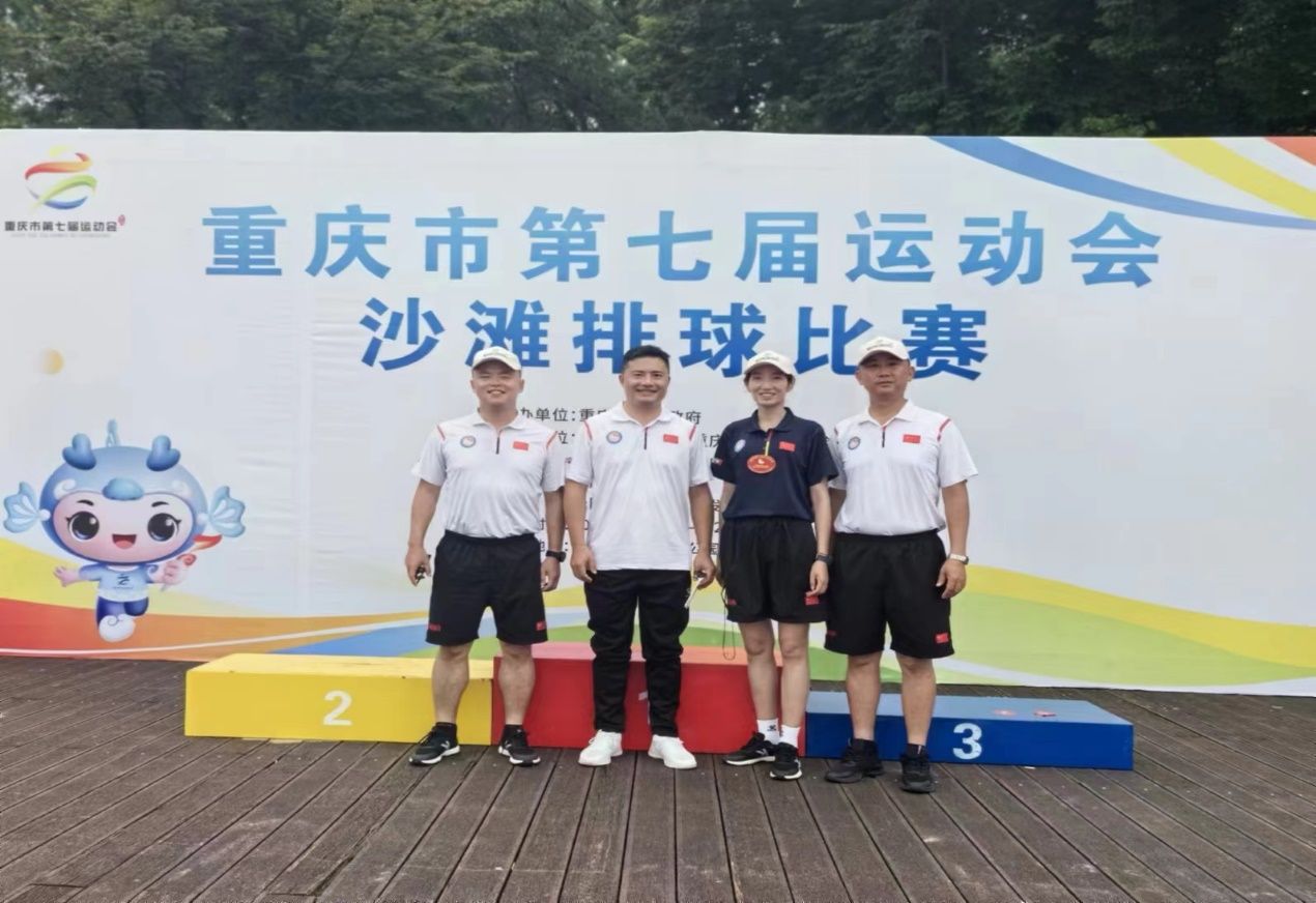 陈华杰老师(右一)担任沙滩排球裁判员