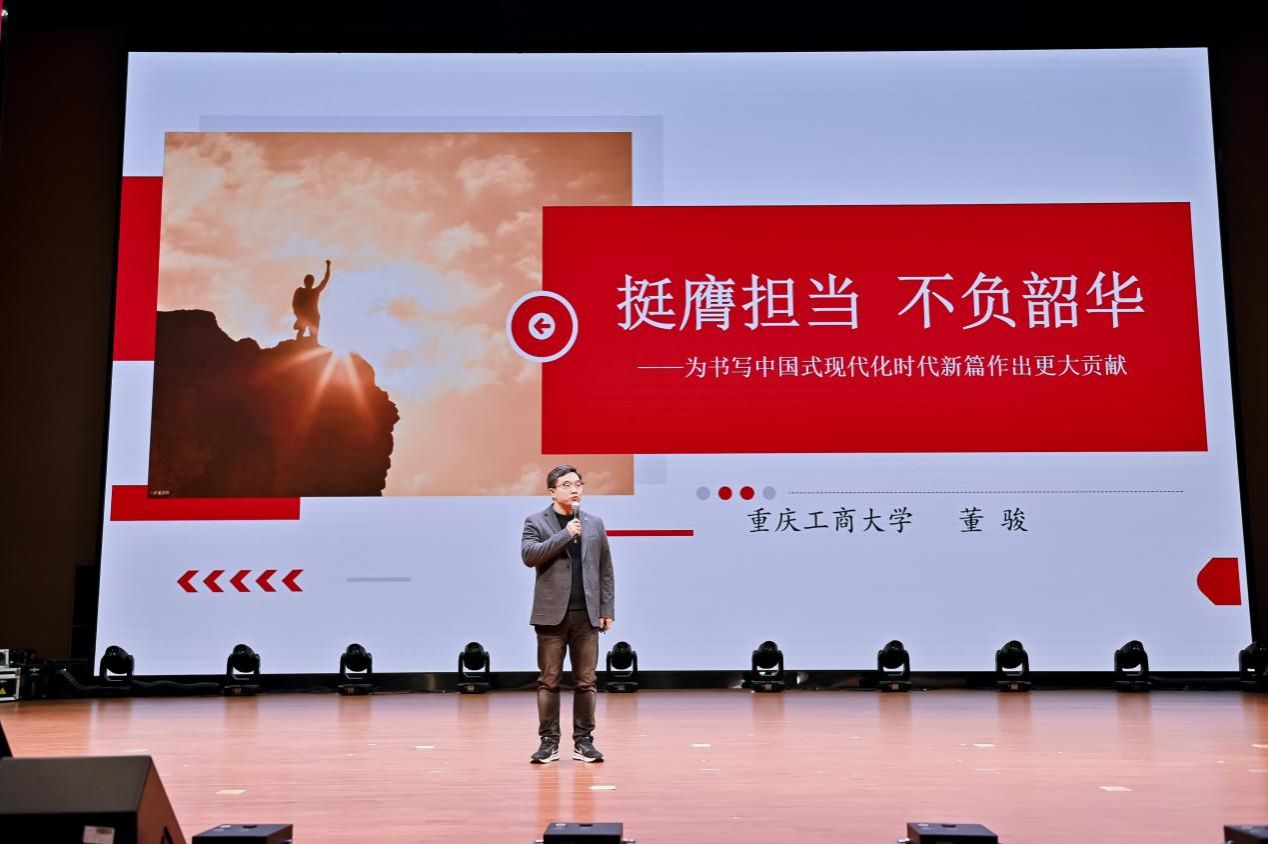 启动仪式上,董骏老师作为优秀思政教师代表以“挺膺担当 不负韶华——为书写中国式现代化时代新篇作出更大贡献”为题进行了首场宣讲,鼓励青年大学生在中国式现代化新征程上勇担新使命展现新作为。
