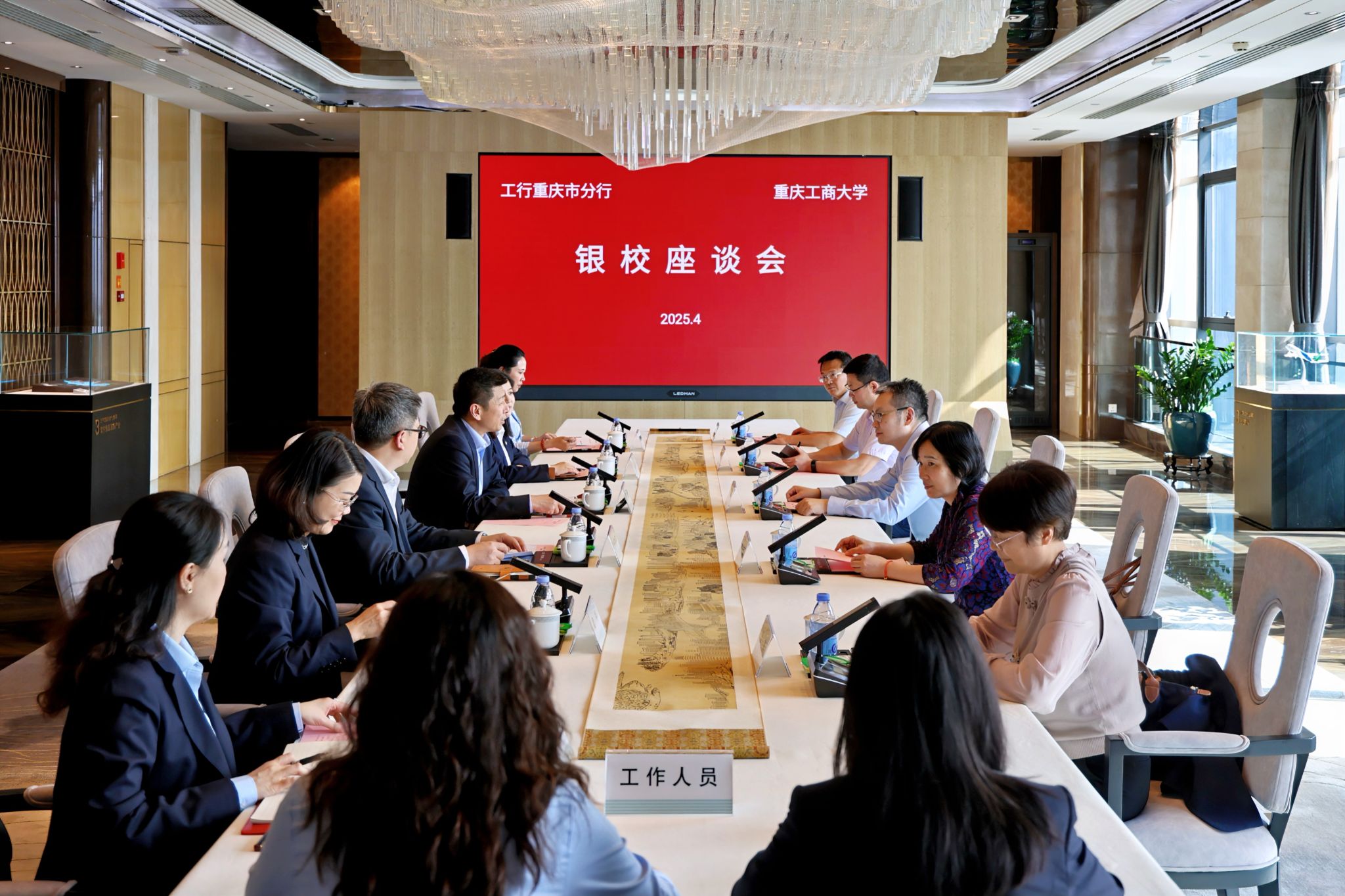 学校招生就业处、财务处、信息技术中心等部门负责人,工商银行重庆分行机构金融业务部、个人金融业务部、自由贸易试验区分行负责人参加座谈会。