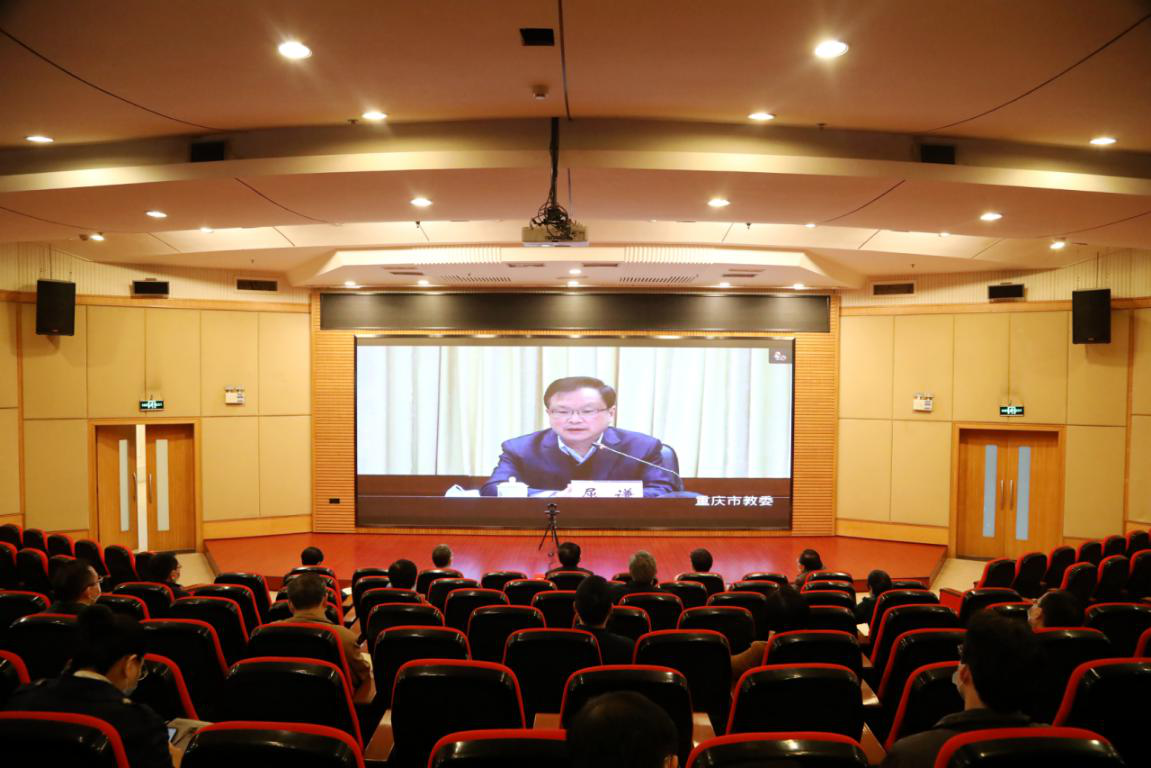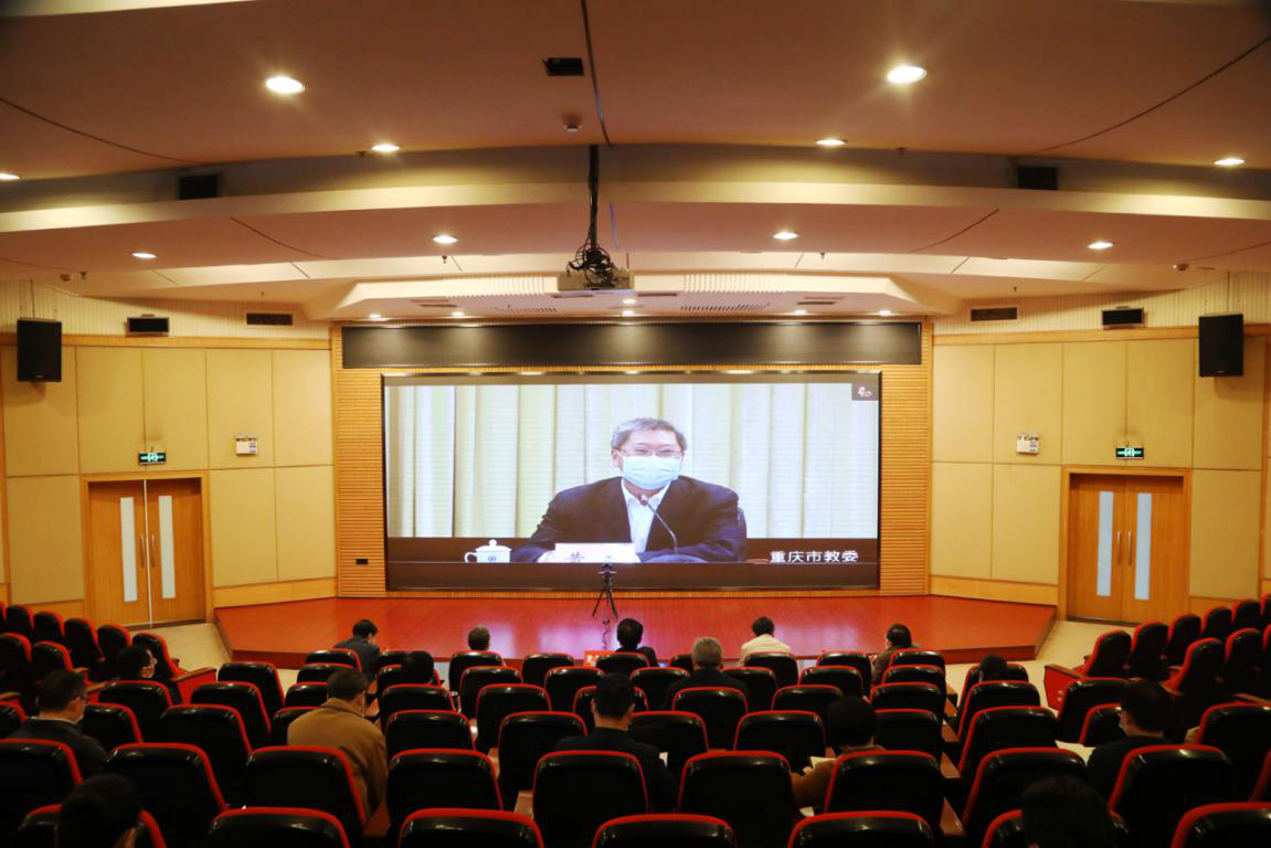4月24日上午,学校全体校领导和相关职能部门负责人在7200学术报告厅参加重庆市教委召开的全市高校开学复课工作视频会,会议由重庆市政府副秘书长唐慎主持。