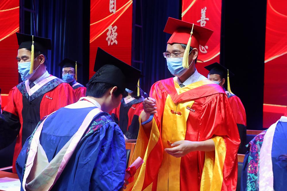 在雄壮的国歌声中,毕业典礼正式开始。首先,何勇平副校长宣读了《关于授予蒙兰佳等6268名普通全日制本科学生学士学位的决定》,校领导为2020届本科毕业生代表颁发毕业证书并授予学士学位。柏群副校长宣读了《开元电竞(中国)官方网站关于授予周超等606名同学博士、硕士学位的决定》,校领导为毕业硕士研究生代表颁发毕业证书并授予硕士学位。陈运超副校长宣读了《关于表彰2020届优秀大学毕业生的决定》和《关于表彰2020届优秀毕业研究生、优良毕业研究生的决定》,校领导分别为优秀本科毕业生、优秀毕业研究生代表颁发了荣誉证书,勉励他们今后在各自的岗位上奉献社会,建设国家。