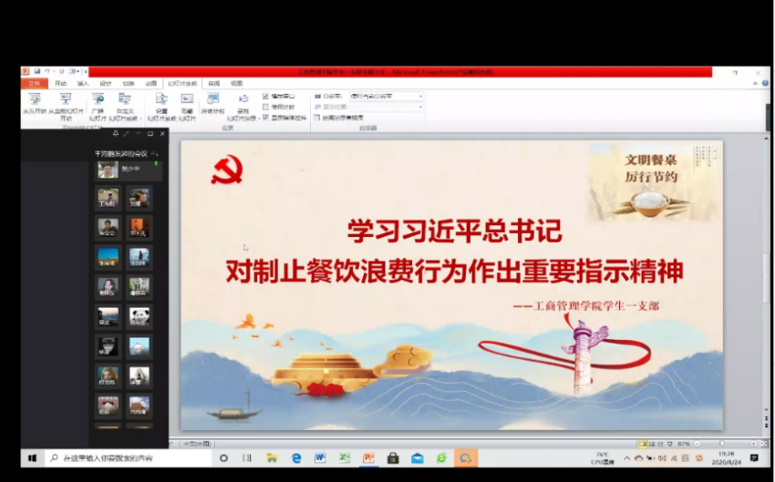 本科学生一支部书记樊少华说“习近平总书记近日对制止餐饮浪费行为作出重要指示,我们党员师生必须在反对餐饮浪费上走在前、做表率”。同学们谈到,想起自己爷爷奶奶那一辈的老人们,勤俭节约已深入骨髓了,从小就教育我们一粒一饭来之不易。我们国家在党的坚强领导下,一步一步从吃不饱走向了有盈余,从贫困迈向了小康,大学生尤其是党员更应该带头践行勤俭节约。