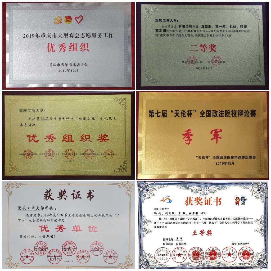 坚持服务同学,助力同学成长成才取得新成果。学生会紧跟学校发展步伐,以五大文化节(科技、社团、义工、艺术、体育)和两大竞赛(“挑战杯” “工商杯”赛事)为抓手,建设有青年特点和学校特色的“新儒商”文化。投身学风建设有举措。一方面配合学校相关职能部门从强化课堂、自修纪律入手,倡议全校学生自觉践行“勤学善思,求真笃行”的工商大学风,开展校院学生会学习科技部座谈会10余次,征集全校同学学习需求,为学风建设提供资料;另一方面围绕专业特色开展丰富多彩的第二课堂活动,推动“青春工商大”APP上线第二课堂学分认证版块,引导同学把专业知识、技能和科研、文体活动相结合。近两年来,有超过4万人次的学生积极主动参加到90多项各类素质拓展活动中;有近1200人次参加了“挑战杯”赛事,获国家级奖项3项,市级奖项40余项。学生权益维护有实招。通过学生权益座谈会、后勤生活交流会、食堂文明监督岗、“青春工商大”APP团团帮、“青年之声”线上平台等渠道,广泛收集同学意见建议,协助学校职能部门及时回应和有效解决同学们关切的问题。处理维权投诉20余件。多形式服务学生学习生活。通过思想动态调研、考研交流、学习研讨等线下活动,“学霸养成记”“研途有你”等线上平台,服务学生成长发展。积极参与学校民主管理,为学校发展建言献策,在招生就业、学生申诉等事宜上选派学生代表参加,充分表达学生意愿。校园文化建设有实效。举办“工商杯”大学生辩论赛70余场,为我校热爱辩论、勇于思辨的青年学生提供展示自我、表现自我、超越自我的平台,吸引近1500余名师生参与观看;举办校园“十佳歌手”“舞蹈大赛”“朗诵大赛”“戏剧大赛”“器乐大赛”共计80余场,推动营造健康高雅的校园文化,吸引近3000余名师生参与观看;举办“新儒商科技论坛”“龙脊书香读书分享会”“工商青年说”等品牌学生活动40余场,分享读书心得、青春故事和人生梦想,吸引3000余名师生参与观看。实践服务有成果。组织志愿者服务31个城乡社区青少年之家、16个敬老院、20个助残基地,为全国志愿服务项目大赛、军博会、抢险救灾等提供志愿服务,志愿服务事迹被《中国青年报》关注和报道;积极响应团中央、团市委号召,组织广大同学踊跃投身社会实践基地、城乡社区市民学校等广泛开展“三下乡”活动;5支团队受国家级表彰,50余个团队和个人受重庆市表彰,社会实践受到《光明日报》《人民日报》《中国教育报》等媒体报道。