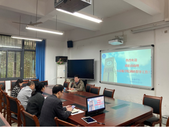11月5日,校长助理谭松涛到金融学院调研并指导工作。金融学院党委书记、副院长王建明,党委副书记、院长王兰,党委副书记、纪委书记余新,副院长庞楷、王韧参加调研会。