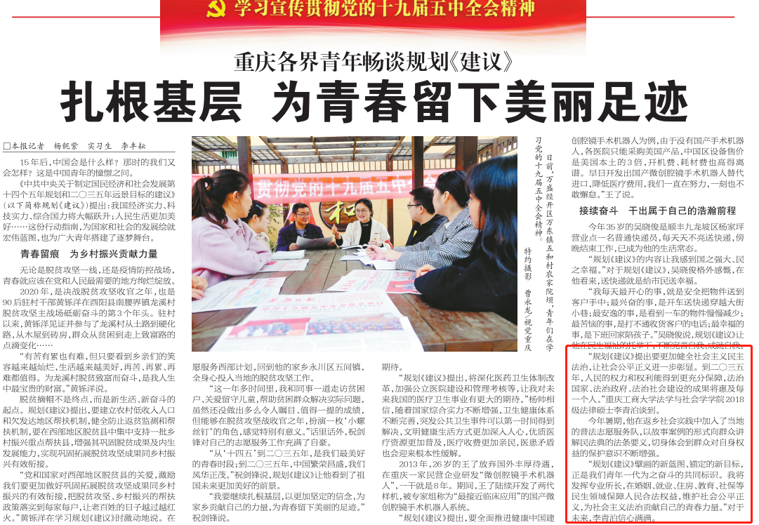 其中,杨占锋、李青泊两位同学的学习体会被《重庆日报》报道。