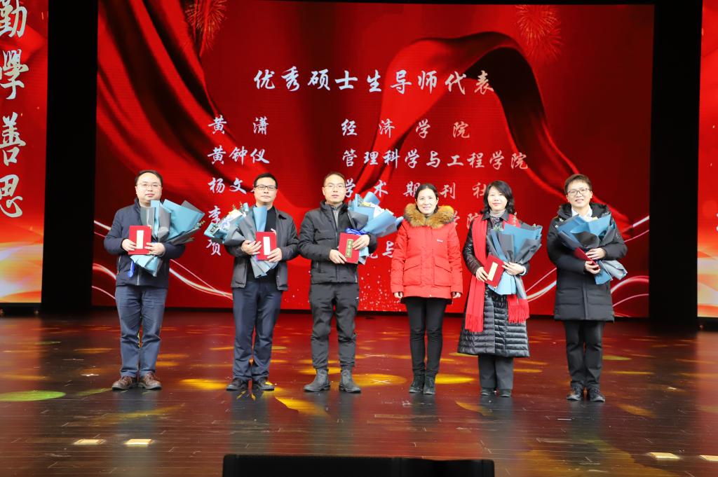 现场颁发了优秀硕士论文指导教师、优秀硕士生导师、研究生就业先进集体、研究生科技文化月优秀组织奖,并为研究生国家奖学金代表、研究生科技创新先进个人代表、优秀研究生代表、优秀研究生干部代表颁发了证书。