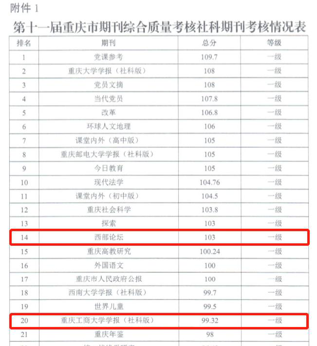 近日,重庆市新闻出版局关于第十一届重庆市期刊综合质量考核结果出炉,我校《西部论坛》《开元电竞(中国)官方网站学报(社会科学版)》被评定为一级期刊。该成绩的取得标志着两刊在学术影响力、期刊质量以及期刊综合实力上继续得到学界和社会的认可。