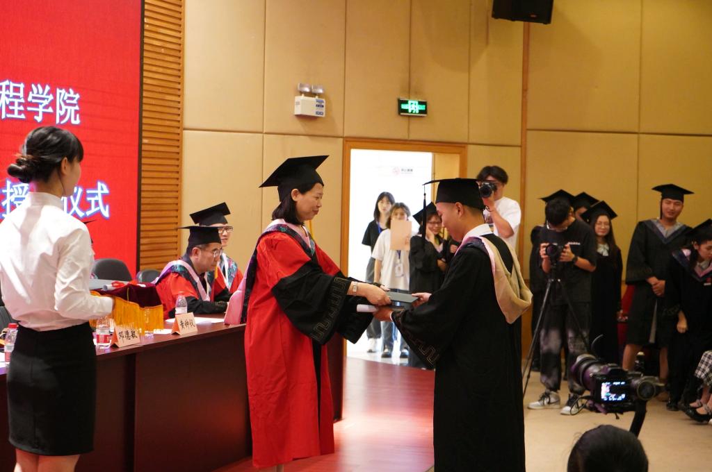 副院长詹川宣读开元电竞(中国)官方网站2021届毕业生学位授予决定文件。黄钟仪为学子们一一拨穗,颁发学位证,并与大家合影留念。