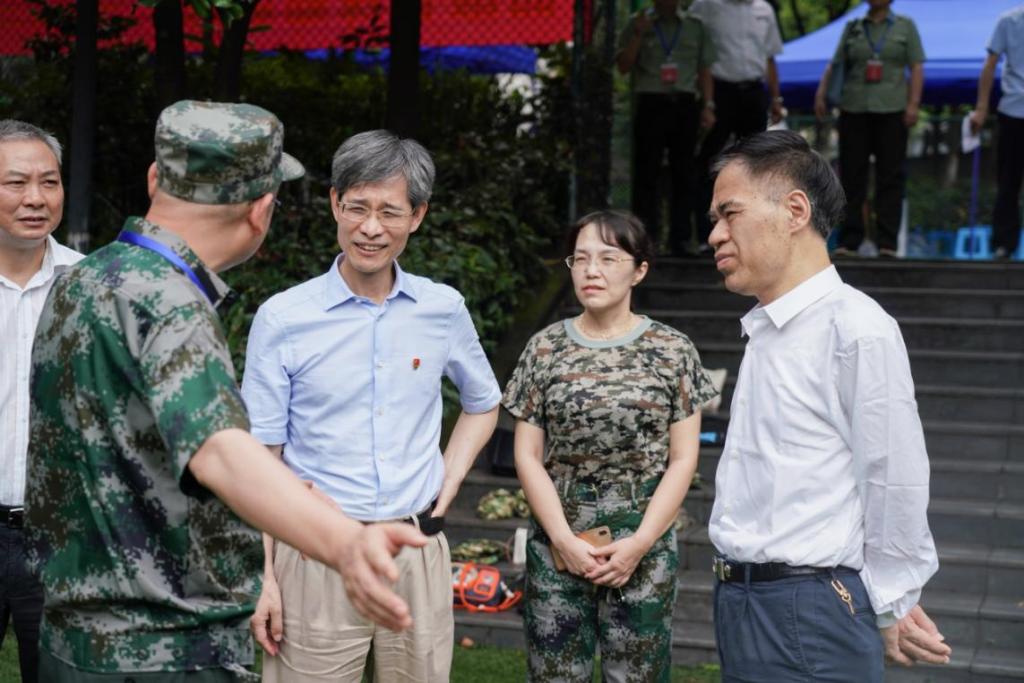 7月5日下午14:30,党委书记李志雄同志,校长孙芳城同志带队分别走访了军训一团(南操)、二团(北操)和三团(兰花湖片区),慰问教官、视察训练进程。整个军训工作井然有序。军训师全体教官、学员用自己的汗水和军训成果向建党百年献礼。