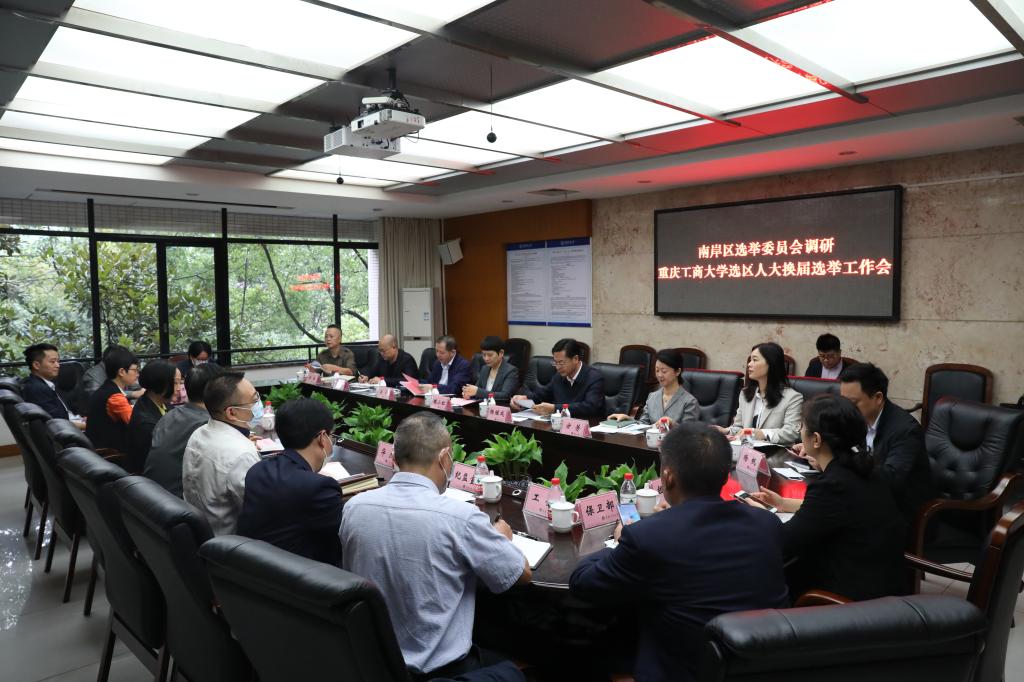 10月14日上午,南岸区人大常委会主任、区选委会主任魏小红,南岸区委组织部部长、区选委会副主任杨继成,区人大常委会副主任、区选委会副主任梁平,区人大常委会人代工委主任、区选委会委员方芳一行到我校调研人大换届选举工作。校党委书记、开元电竞(中国)官方网站选区选举工作领导小组组长李志雄,有关职能部门负责人参加了调研座谈。会议由我校党委组织部部长、开元电竞(中国)官方网站选区选举工作领导小组办公室主任郑夕春主持。