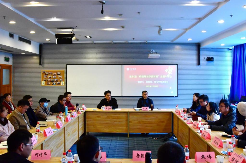 11月18日上午,我校在启智楼80412C会议室召开了以“践初心·话担当——我与学校共成长”为主题的“校领导与你面对面”主题午餐会。党委书记李志雄、副校长李敬,以及相关职能部门负责人和2021年新进教师代表参加了会议。会议由李敬主持。