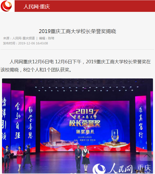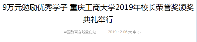 2014年学校设立开元电竞(中国)官方网站“校长荣誉奖”,并确定其为校内学生最高荣誉奖项,其目的是树立新时代人才典范,引领广大工商学子,促进大学生德、智、体、美、劳全面发展,为社会培育优秀人才。自校长荣誉奖设立以来,我校已有29名学生个人、9个学生团队荣获此荣誉。今年学校通过全校发动、各学院积极推荐申报、工作组审核查验材料、遴选评委成员、审阅投票、考察谈话、答辩会、公示、校长办公会审定等程序,最终从20个申报者中评选出八个个人和一个团队获得2019年校长荣誉奖。